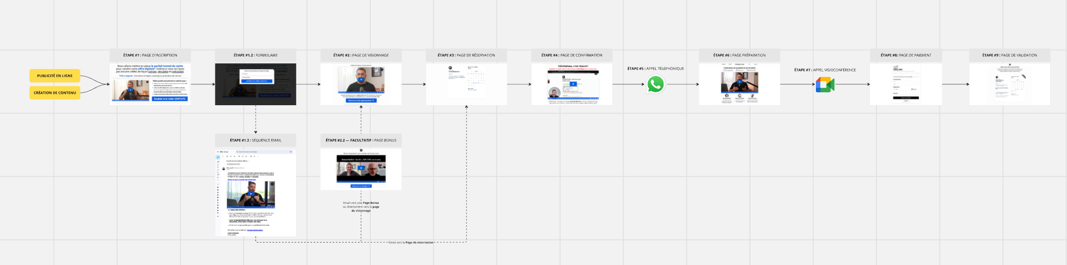 Le système est simple. Tu crées du contenu, une vidéo YouTube, un podcast, des posts, qui explique ce que tu fais et comment tu peux aider les gens. À la fin, tu invites les personnes intéressées à réserver un appel avec toi.
