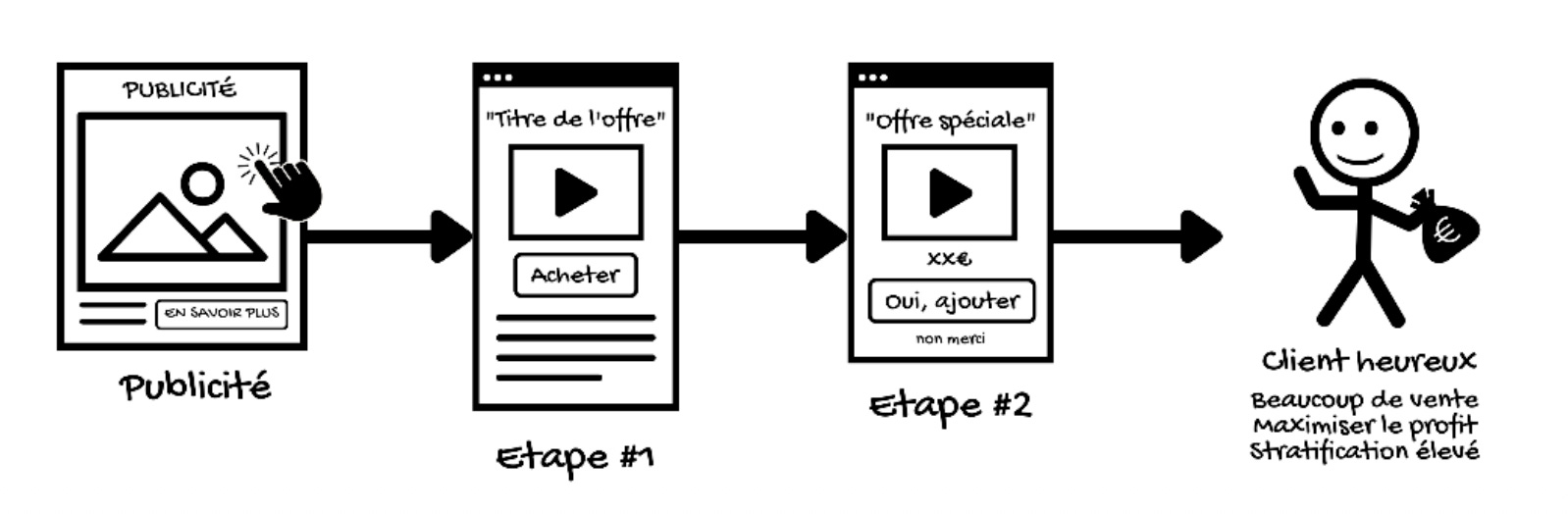 En fait, les Funnels sont présents partout autour de nous. C’est simplement une suite d’étapes par lesquelles on va faire passer nos clients. L’objectif étant de simplifier leur parcours, d’augmenter leur satisfaction et de gagner plus.