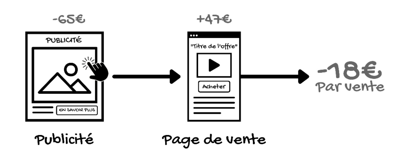 Je dépensais 65 € en publicité pour faire une vente à 47 €. Je perdais donc 18 € pour chaque nouveau client.