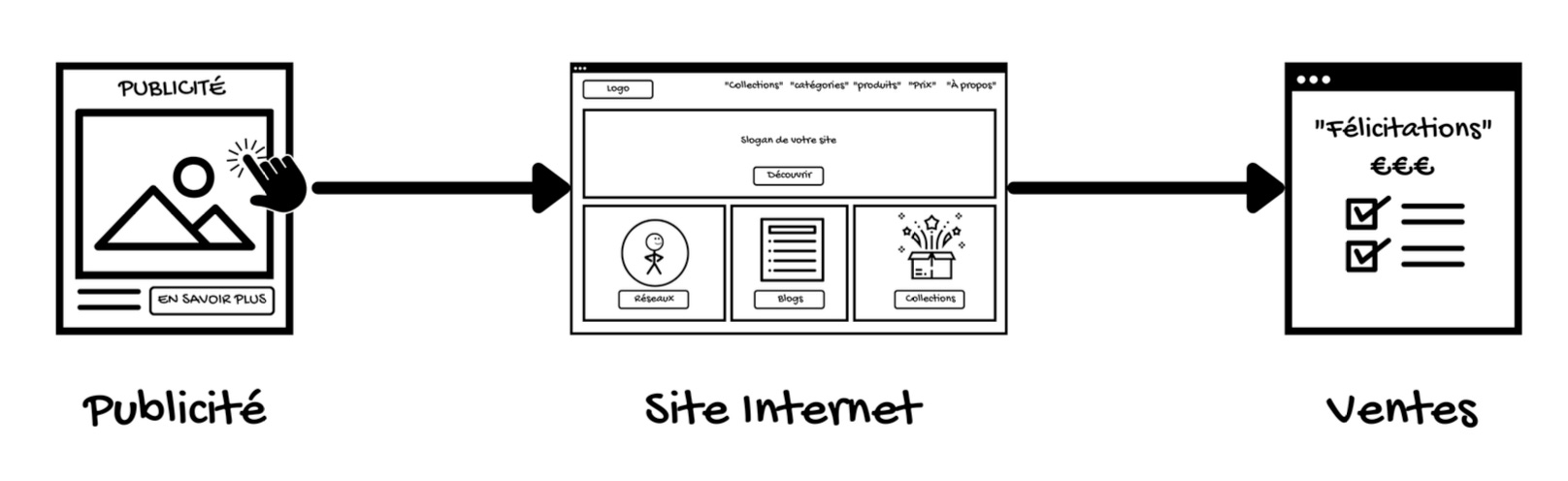 “Un tunnel de vente (ou Funnel) ce sont les différentes étapes de votre stratégie pour convertir un inconnu en client. Des visiteurs qui deviennent prospects, puis clients et enfin ambassadeurs”