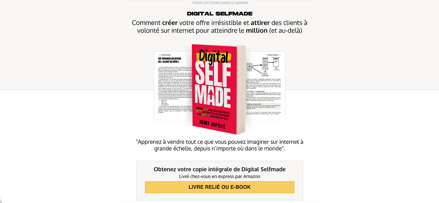 Des dizaines et des dizaines de clients ont commencé leur parcours avec moi en lisant Digital Self-Made. Certains ont ensuite rejoint mes programmes, mes accompagnements, mes offres premium. Le livre est une porte d’entrée. La meilleure que j’aie créée.