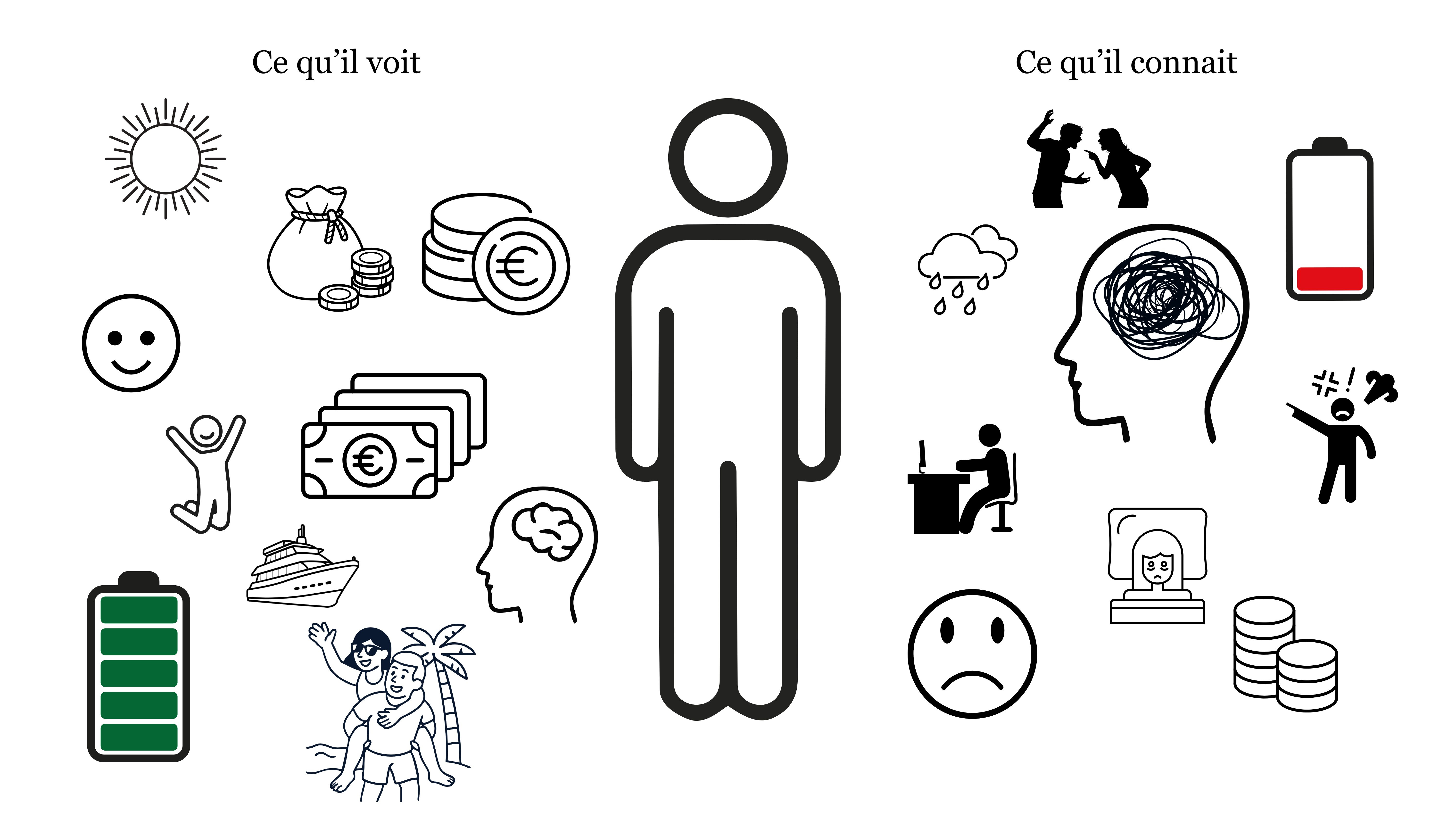 D’un côté : ce qu’il imagine de la vie de l’autre. Simple, rapide, passionnant, peu de charge mentale, beaucoup de marge.